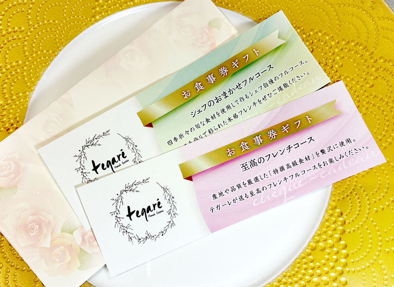 テガーレではお食事券ギフト「テガーレペアチケット」を販売しております。